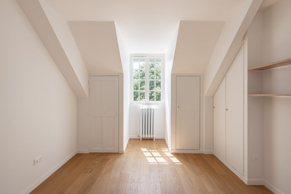 Le diagnostic initial et l’analyse du bâtiment ont permis de penser au mieux la répartition des différents espaces et les démolitions majeures à apporter tout en conservant l’esprit des lieux, l’ensemble représentant 1000 m² sur 4 niveaux.